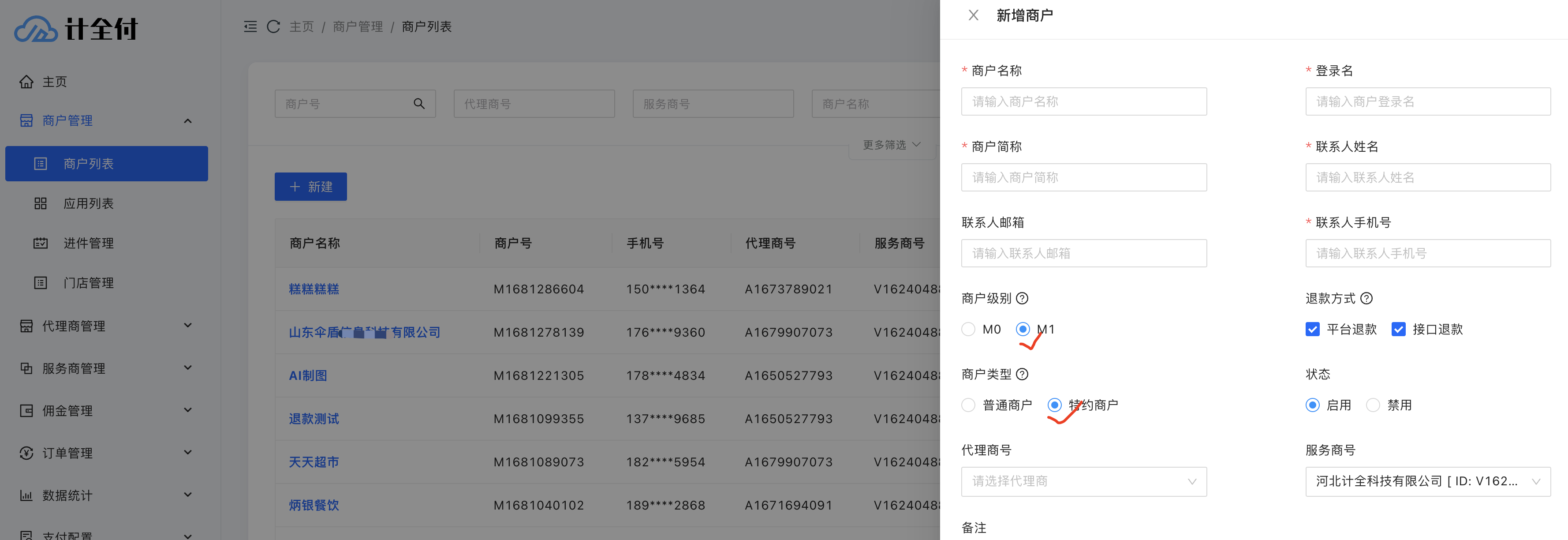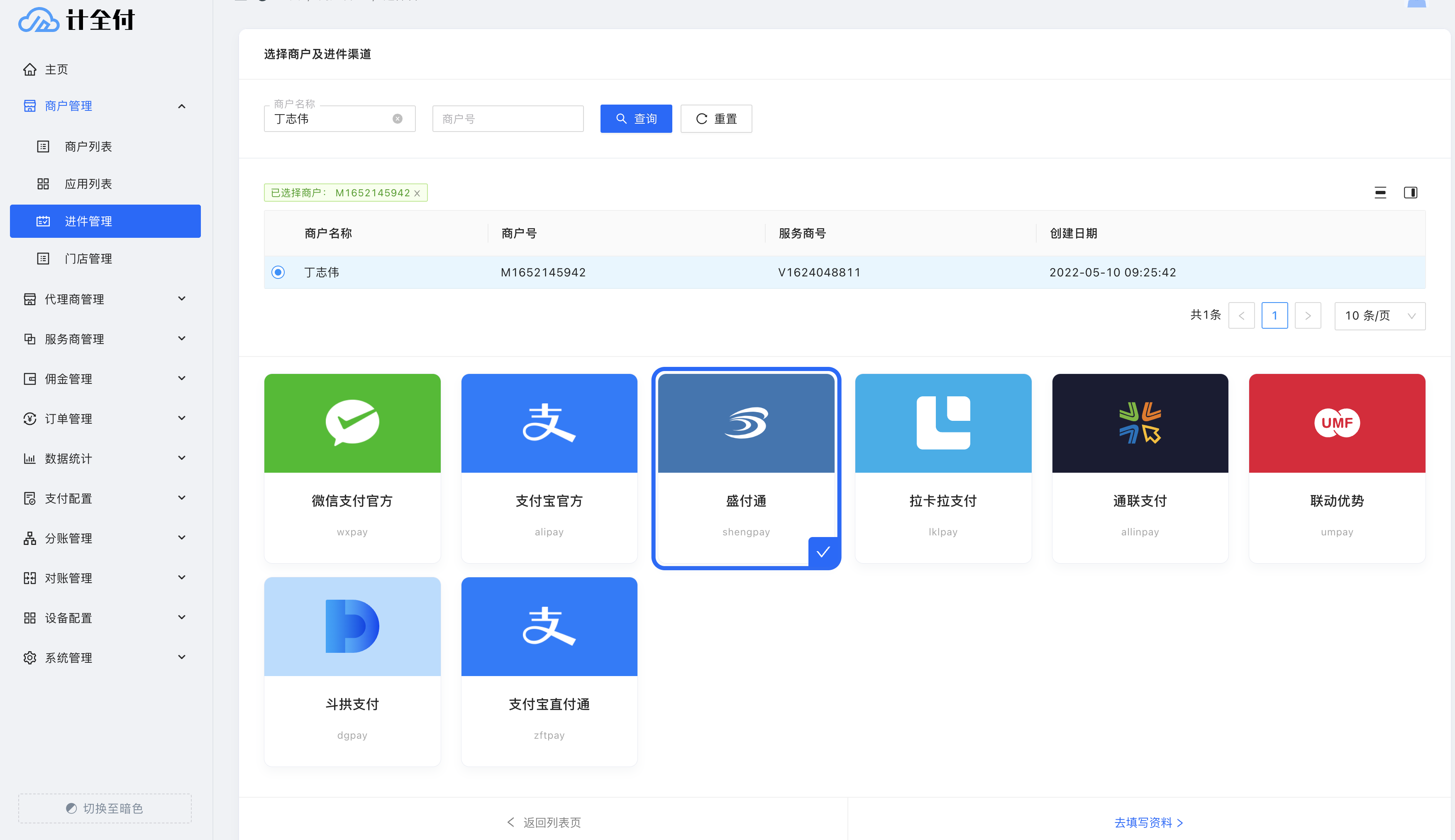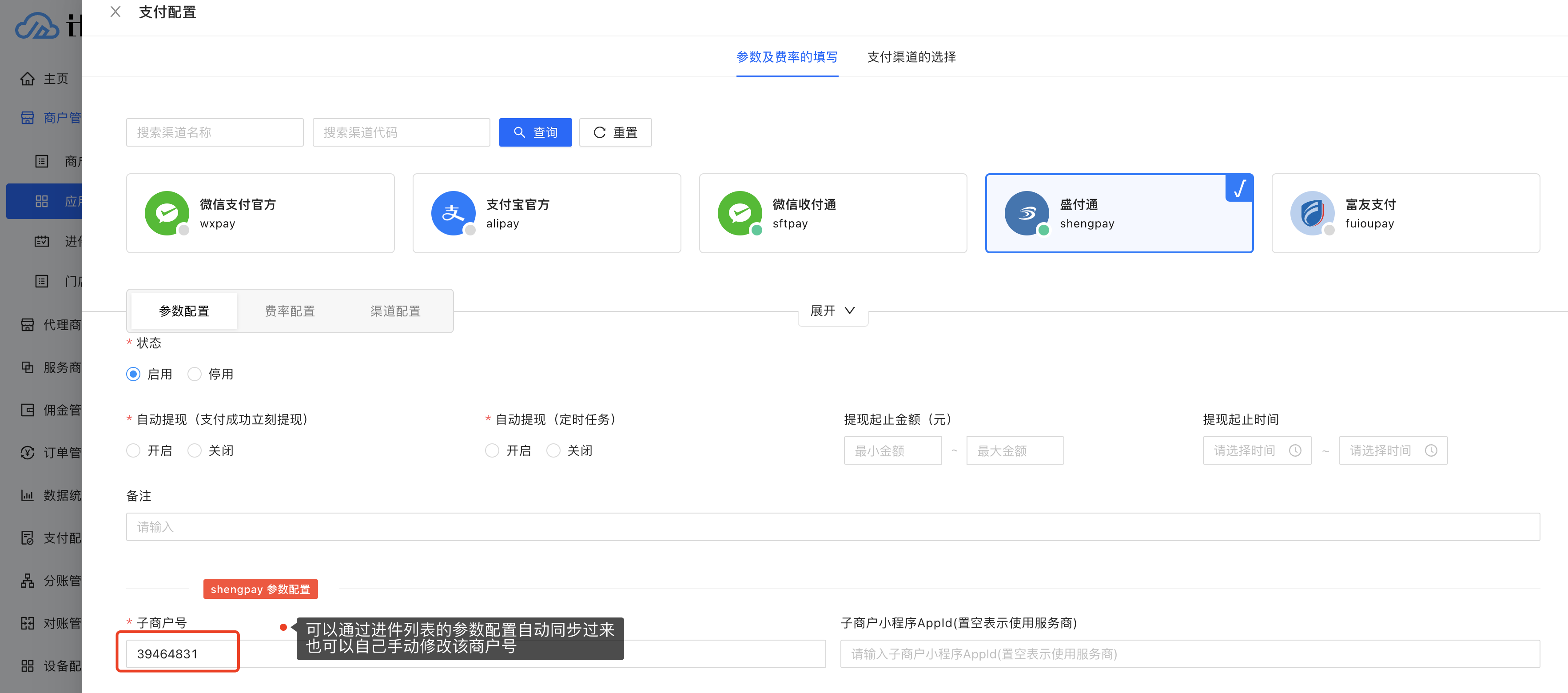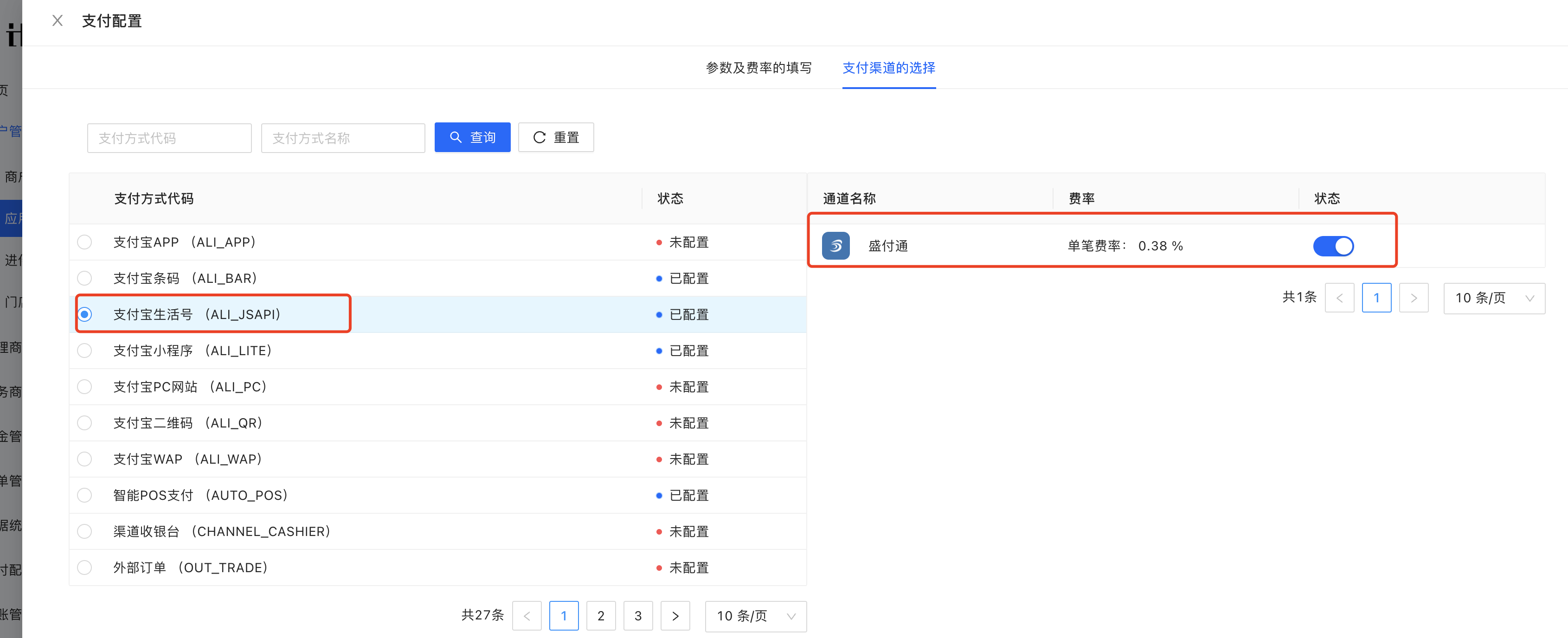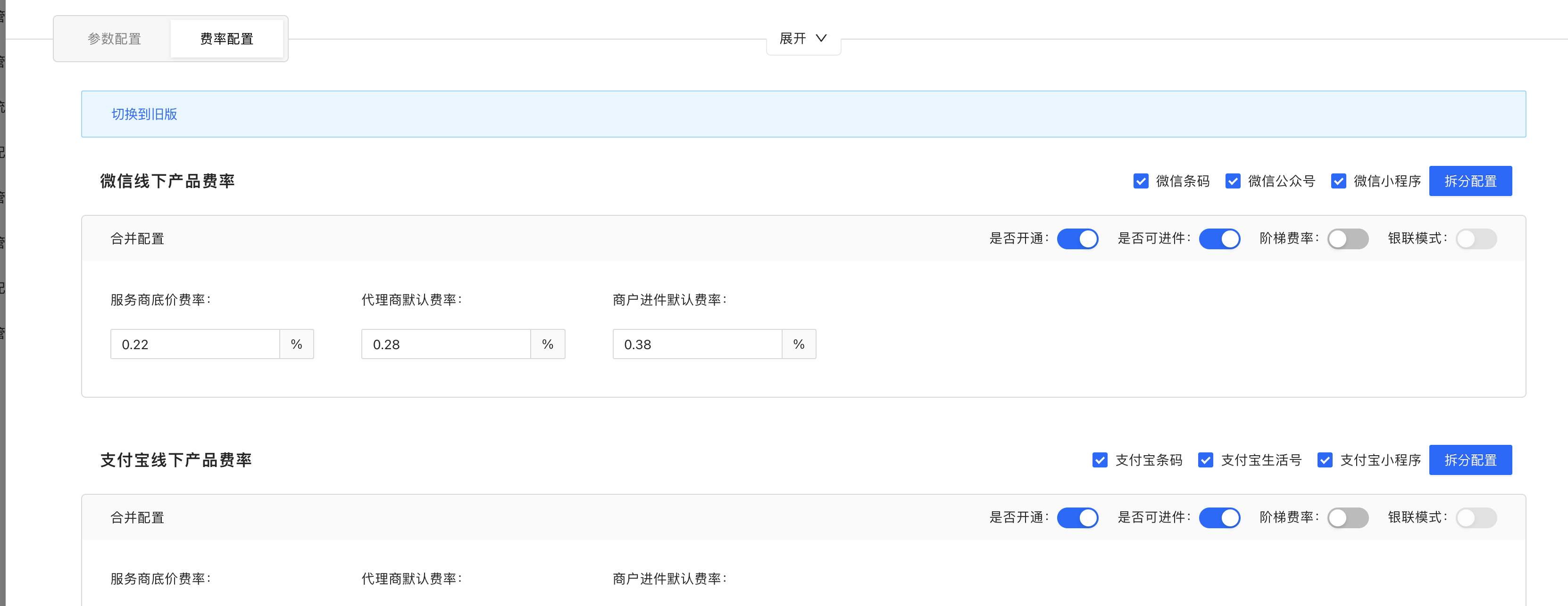 配置好参数和费率后,需要设置每个支付方式对应的支付渠道。