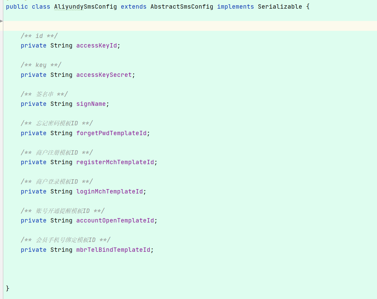 - AbstractSmsConfig中添加对应的获取实现: