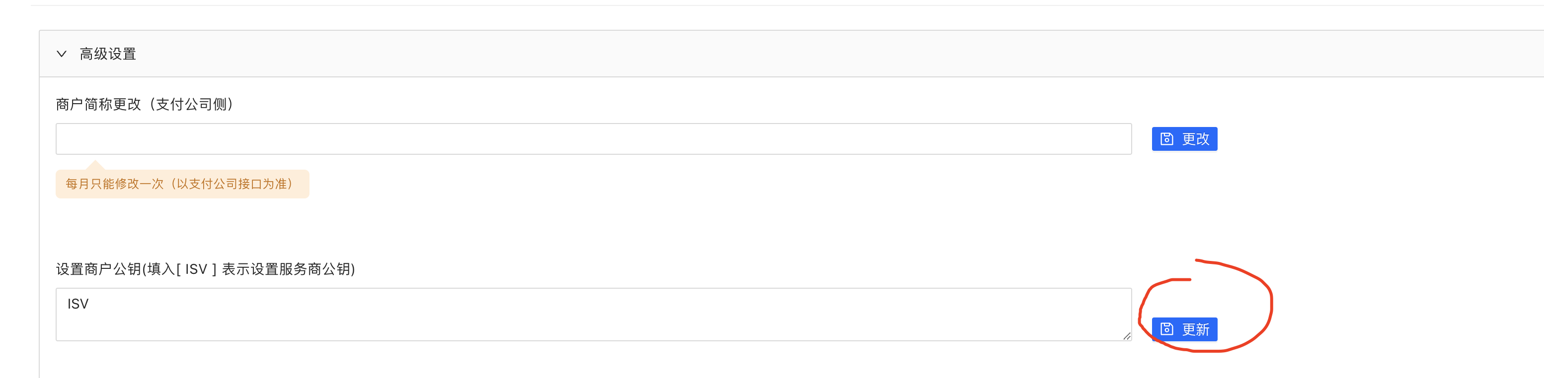 如果想要单独配置,可以在商户 - 应用 - 盛付通 - 渠道配置 - 高级设置 中配置。