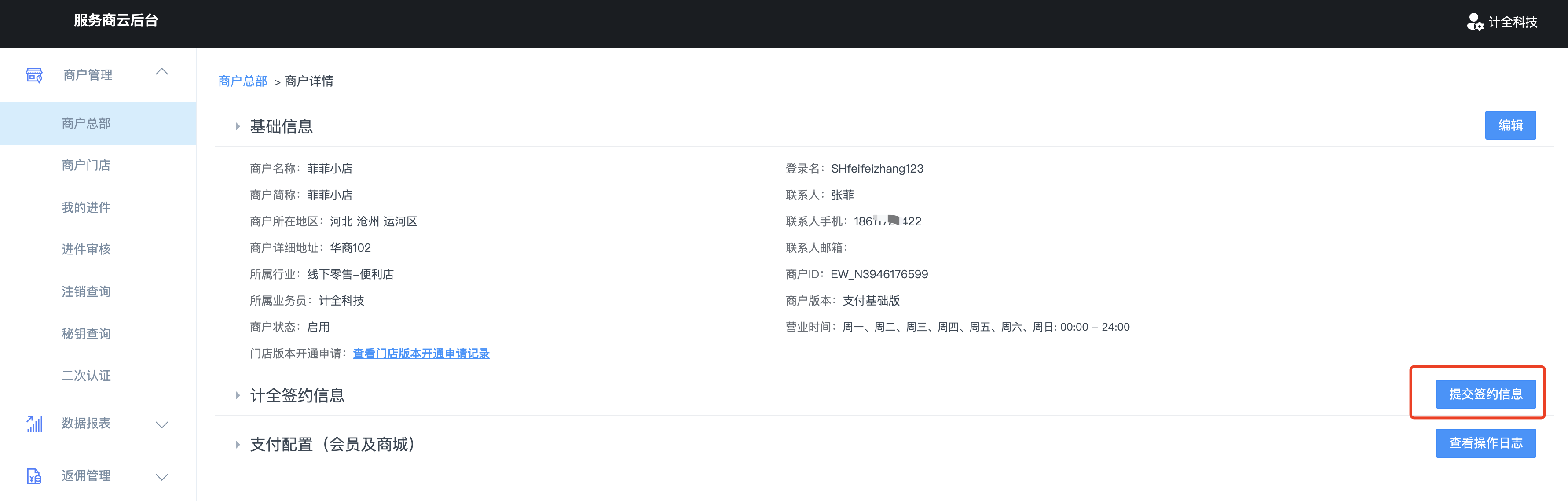 进入查看,可配置该商户的安付捷支付通道。