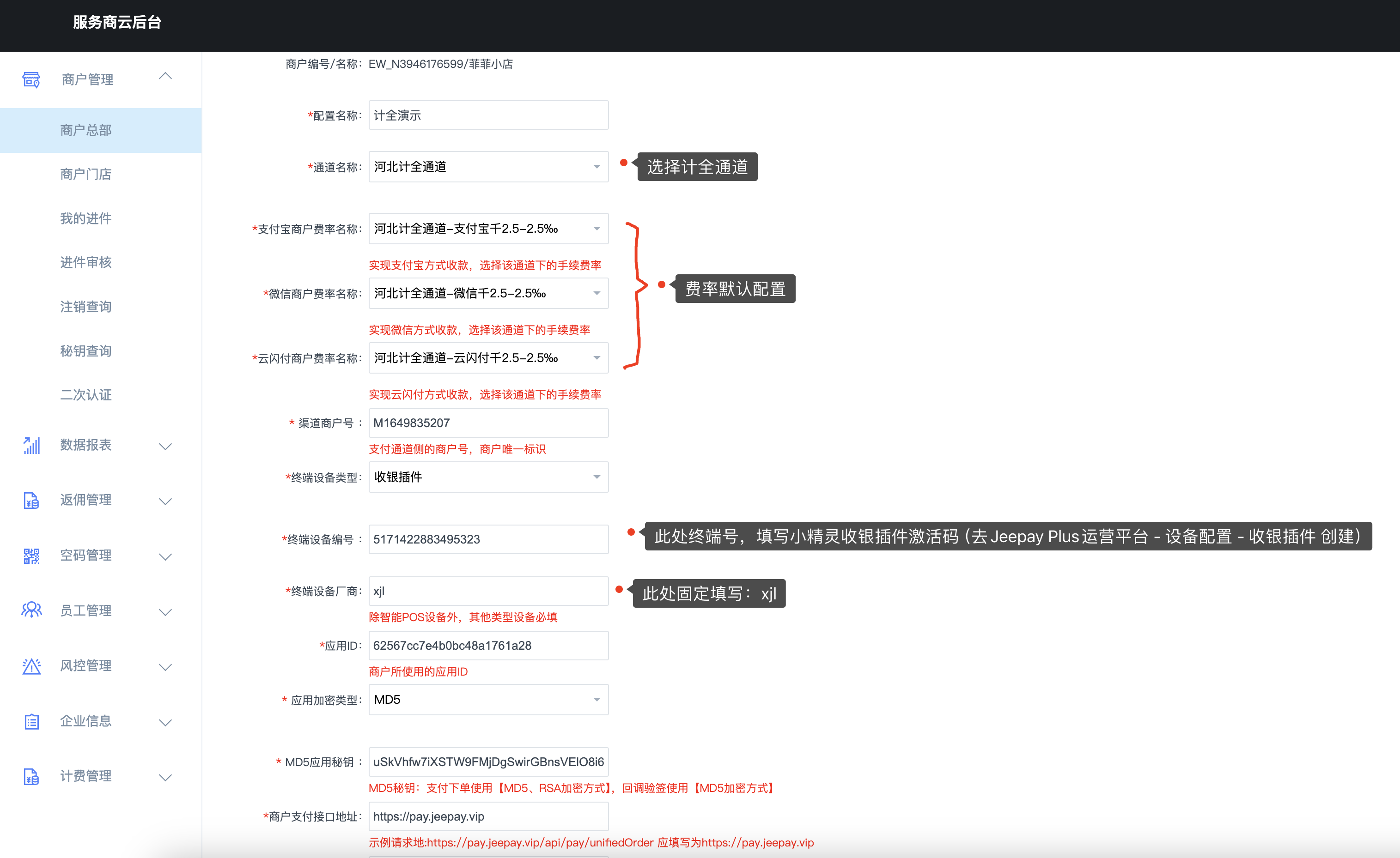 按如下提示,填写对应的支付参数配置。