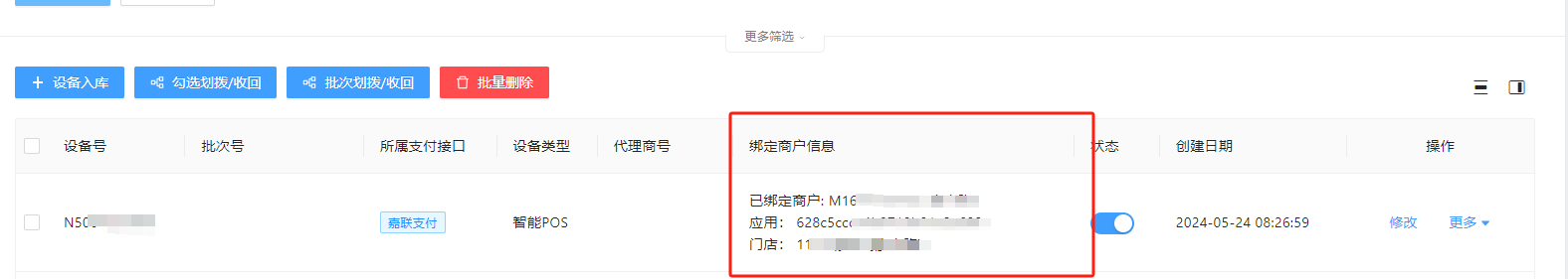 将设备绑定商户和门店。