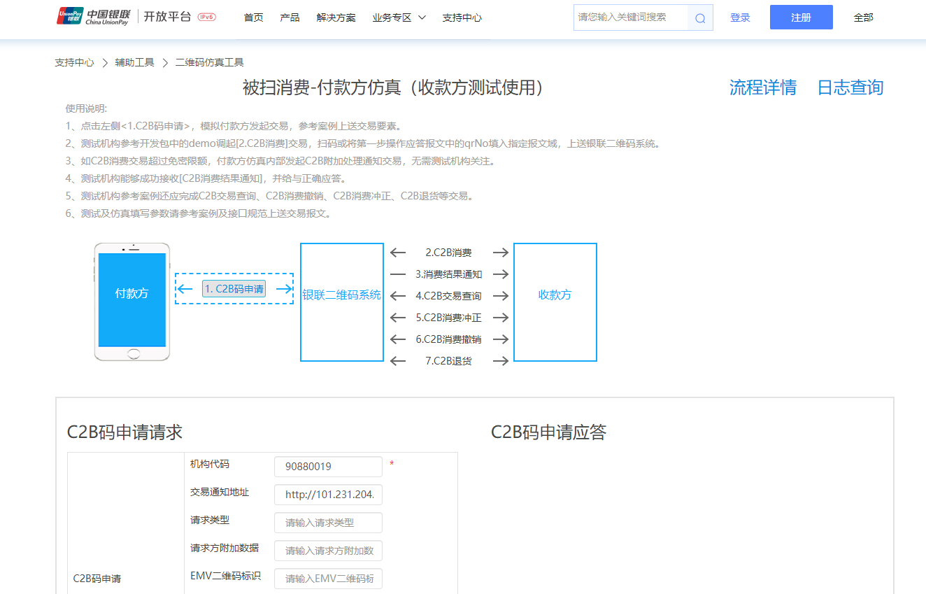 银联支付测试环境请使用,银联仿真平台进行测试;银联仿真平台地址