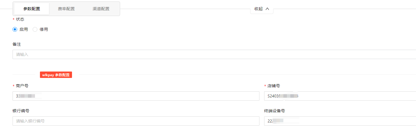 - 完成上述配置后请按支付流程配置将费率及子商户参数进行配置。(支付方式费率&支付方式开启)