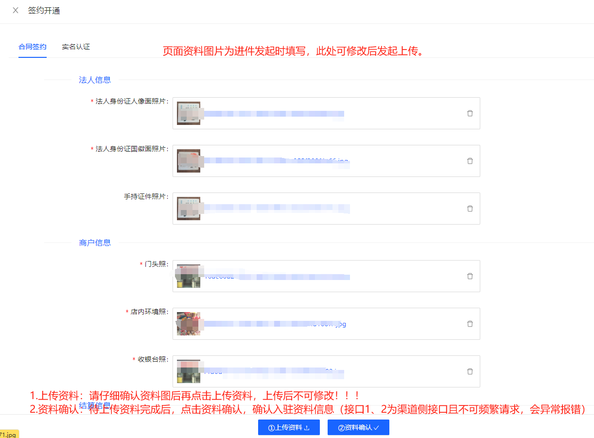 - 实名认证完成后,商户入驻完成