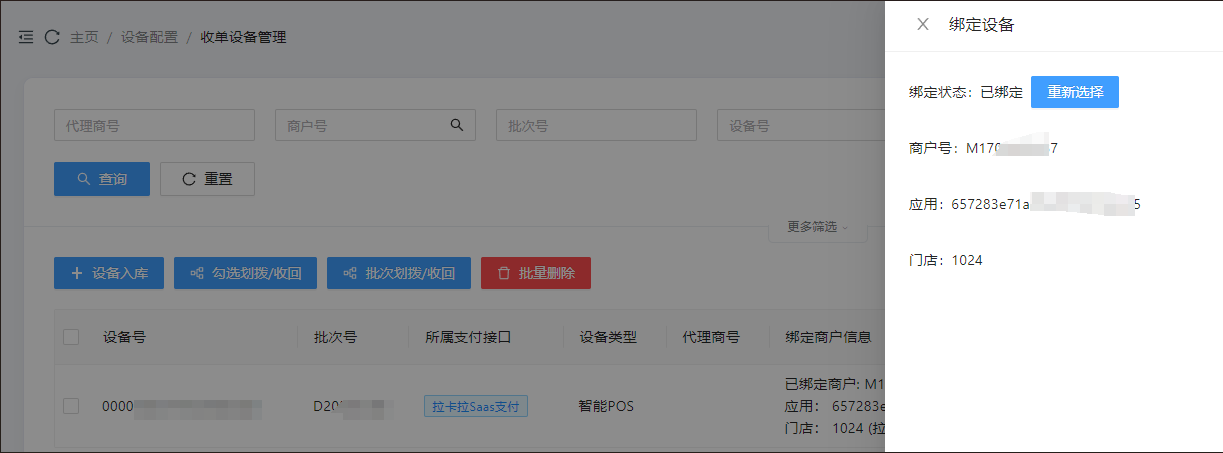 联系安付捷支付或拉卡拉Saas支付工作人员,购买智能POS机。在汇拓客平台为商户做设备绑定操作。