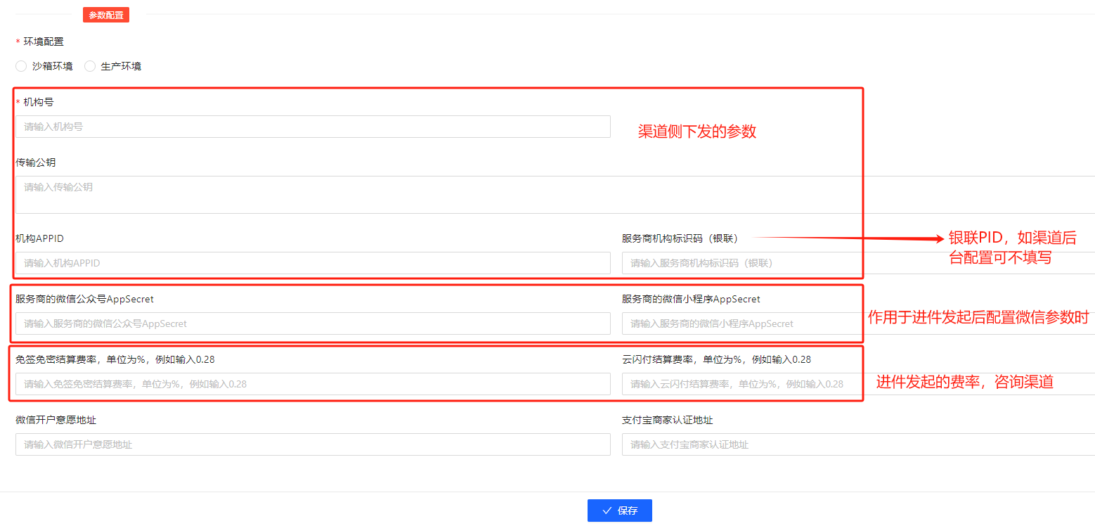 国通星驿安付捷配置进件说明国通星驿对接文档请联系对接方安付捷配置 按渠道文档说明/对接人员沟通生成对应的签名公私钥,按如下配置,配置到服务商参数中进件说明 状态流转:发起进件 -> 等待审核结果 -> 待验证 -> 进件成功 发起进件后进件记录状态为<等待审核结果>,等待支付公司审核进件信息,当进件状态转为<进件成功>时,点击<签约开通>操作后续步骤。 打开签约开通页面,进行扫码实名认证 实名认证完成后,商户入驻完成 文档更新时间: 2026-02 作者:LK